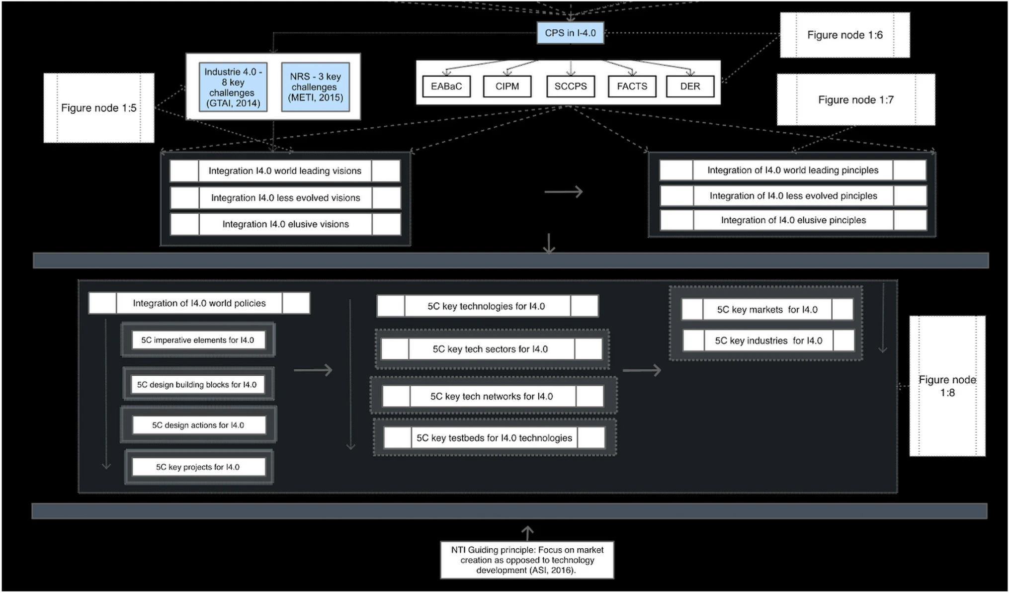 The engagement of AI in the cyber world and the human engagements in the physical world have been studied excessively in isolation, but the roadmap to I4.0 is still unclear (Caiado et al. 2021) and little attention has been given to the combination of AI and the cyber-physical world (Hollebeek et al. 2021). The world leading Industry 4.0 frameworks (Table 1)—identified from (Radanliev et al. 2020abcde) are analysed in a (a) comparative empirical study that correlates (b) hierarchical cascading based on the (c) grounded theory approach to determine (d) taxonomic classifications. A comparative empirical study (Murray-Rust et al. 2014; Van Kleek et al. 2018) is used to establish a design process (Lee et al. 2019a2019b) for integrating present CPS techniques and literature review for the future CPS techniques in Industry 4.0.